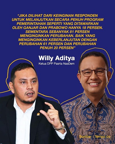 Pertanyaan selanjutnya, bila suara Anies terus melonjak, kira-kira apa penyebabnya? Kemungkinan besar, karena jaringan relawan Anies semakin solid dan besar. Selain dukungan dari Partai Politik di Koalisi Perubahan dan Perbaikan, relawan jadi faktor penting dalam meningkatkan dukungan kepada Anies Baswedan.
