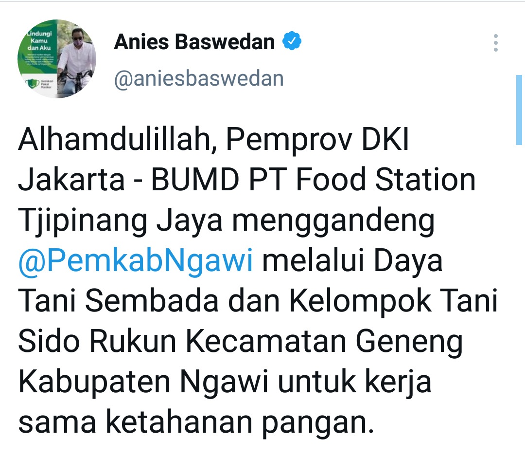 Sebelumnya diberitakan, Gubernur DKI Jakarta, Anies Baswedan, berkunjung ke Cilacap, Jawa Tengah. Dari akun media sosialnya diketahui, kunjungan pada Jumat (16/4) itu dilakukan dalam rangka panen padi milik BUMD DKI Jakarta, PT Food Station Tjipinang Jaya.