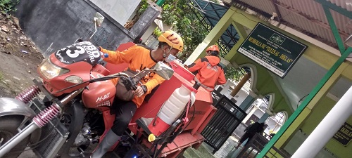 Sebelum melaksanakan kegiatan kerja bakti membersihkan Mushola, Tim Sahabat MUSTAHIQ dibantu BPBD Kota Kediri beserta para pengurus RT: 12 melakukan penyemprotan disinfektan untuk mencegah penyebaran wabah Covid-19 serta mencegah penyebaran nyamuk demam berdarah, sasaran penyemprotan disinfektan adalah disekitar lingkungan Mushola.