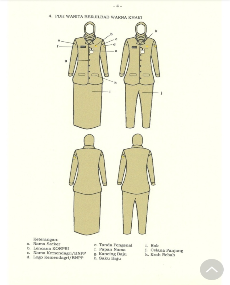 Sementara untuk ASN perempuan, Tjahjo memerintahkan: a. Rambut rapi dan tidak dicat warna-warni; b. Bagi yang menggunakan jilbab, agar jilbab dimasukkan ke dalam kerah pakaian dan sesuai warna pakaian dinas; c. Warna jilbab tidak bermotif/polos.