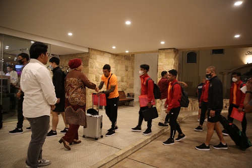 Duta Besar Indonesia untuk Kuwait, Ibu Lena Maryana yang menyambut di tempat akomodasi mengucapkan selamat datang kepada seluruh anggota tim dan menyatakan kesiapan KBRI untuk mendukung perjuangan timnas menuju Piala Asia 2023.