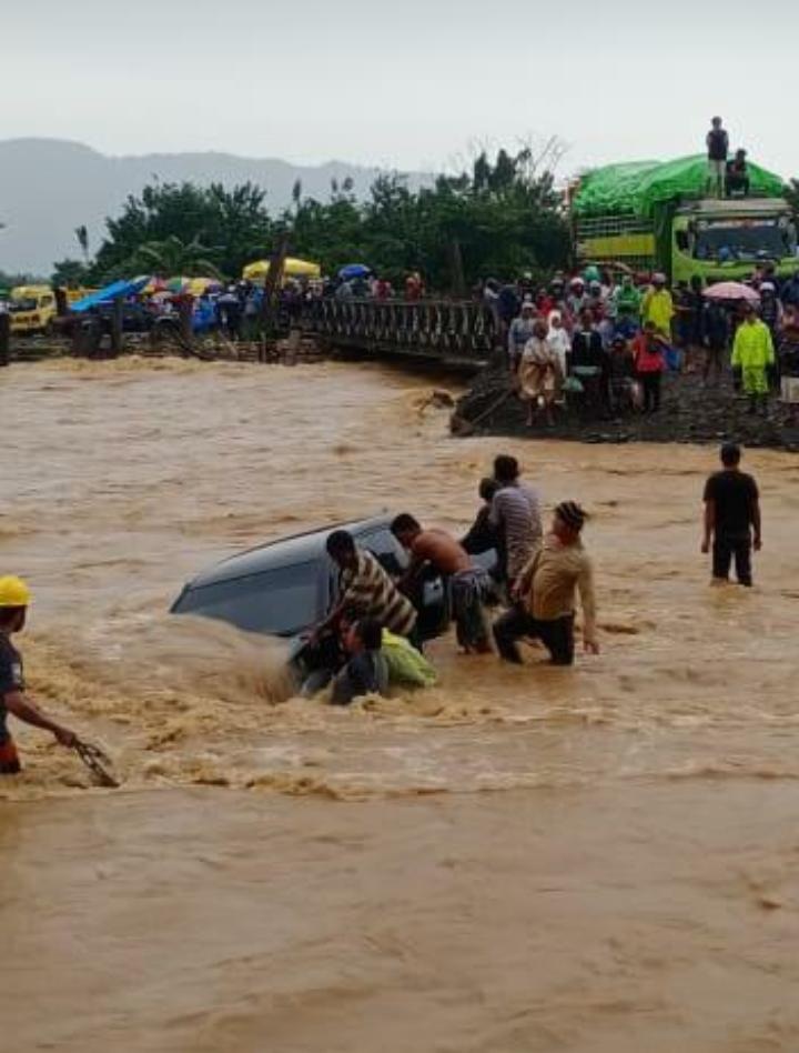 Peristiwa ini mengakibatkan arus lalu lintas terganggu. Sebab, arus air sungai melewati ruas jalan trans Sulawesi.