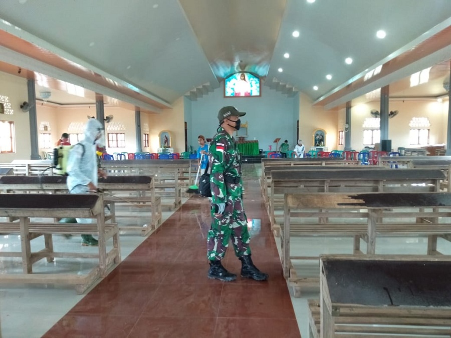 Penyemprotan, sambung prajurit asal Kota Pamekasan, Madura ini, dilakukan sehari sebelum kegiatan ibadah berlangsung.