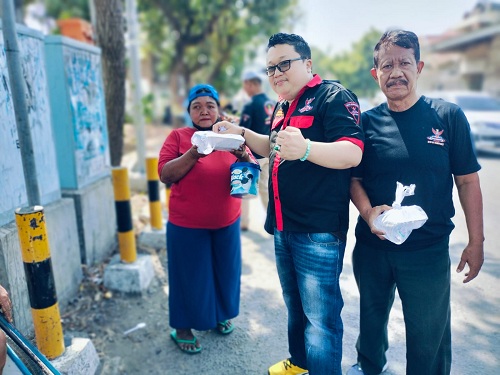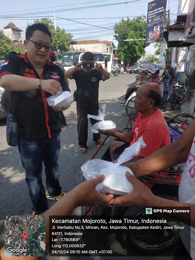 KOTA KEDIRI – Dalam rangka mendekatkan diri kepada masyarakat sekitar 30’an aktifis ormas DPC GRIB Jaya Kota Kediri pada hari Jumat ( 04/10 ) melakukan bakti sosial Jumat berkah dengan membagikan 500 nasi kotak dan air mineral kepada tukang becak, penyapu jalan, kaum dhuafa, tukang ojek dan para pengguna jalan yang lewat di sekitar perempatan lampu merah Kelurahan Mrican Kecamatan Mojoroto Kota Kediri.
