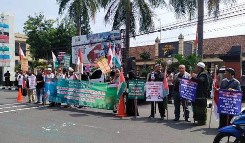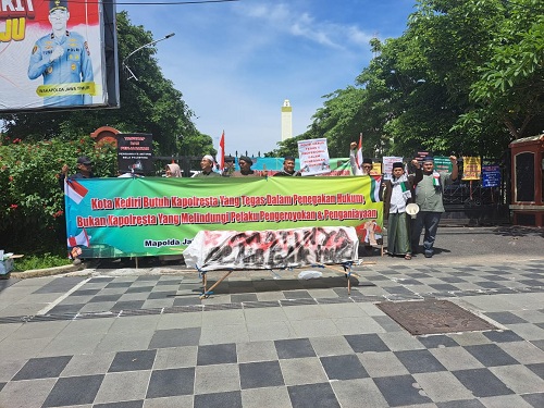 SURABAYA – Senin (22/1/ 2024) Relawan Peduli Bela Palestina Kediri Raya usung keranda ke Polda Jatim menuntut penegakan hukum atas terduga pelaku bernama Huri, Hamid dan anaknya.