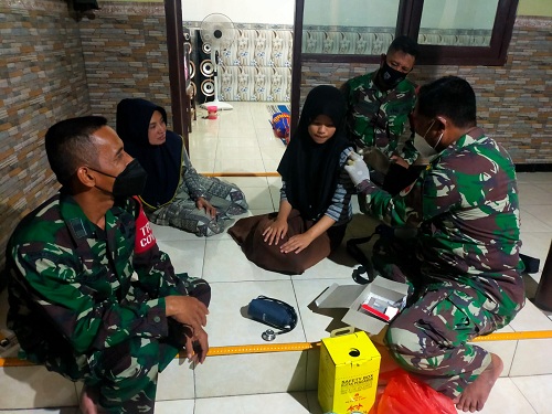 ZONASATUNEWS.COM, PAMEKASAN – Kerja keras dalam usaha percepatan vaksinasi terus dilakukan oleh Babinsa Koramil 0826-05 Larangan dengan memberikan pelayanan vaksinasi secara door to door kepada warga Desa Larangan Dalam, Minggu (08/11/2021).