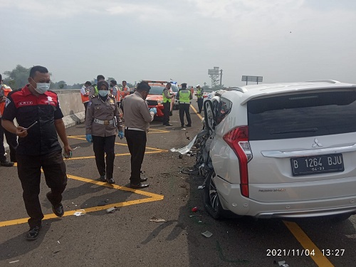Semula kendaraan Pajero nopol B 1264 BJU berangkat dari Jakarta. Setiba di KM. 673+300/ A ruas tol Jomol, kendaraan tersebut tiba-tiba menabrak beton pembatas kiri ruas tol di karenakan sopir mengantuk.