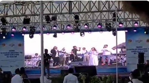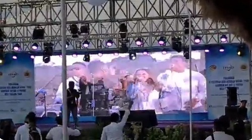 Dilihat dari video yang diunggah oleh akun Twitter Corr L.A @jagungtiti71, terekam acara di pinggir pantai. Terlihat ada kursi dan meja, serta panggung pertunjukan.