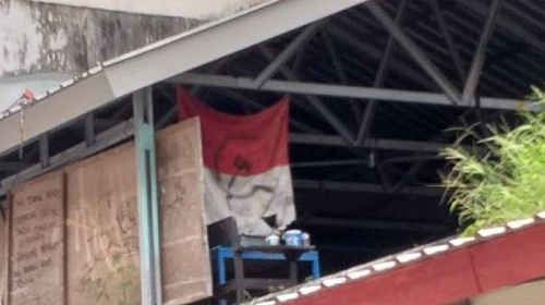 Bendera merah putih yang digambari logo palu dan arit di salah satu bangunan fakultas sosial dan politik Unhas Makassar, Sabtu (11/4/2020) lalu.