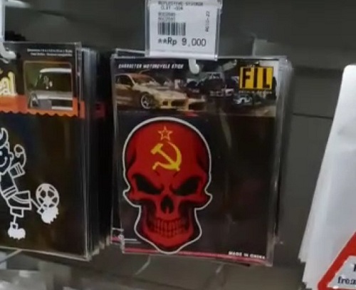 Stiker dengan logo palu arit yang ditemukan di jual di salah satu toko di Palembang. (foto: dok. istimewa)