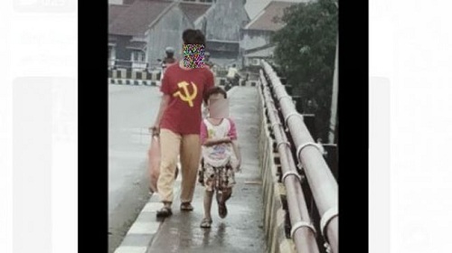 Seorang ibu muda menghebohkan media sosial karena memakan kaos palu arit mirip lambang Partai Komunis Indonesia atau PKI. Dia adalah K, perempuan berusia 26 tahun.