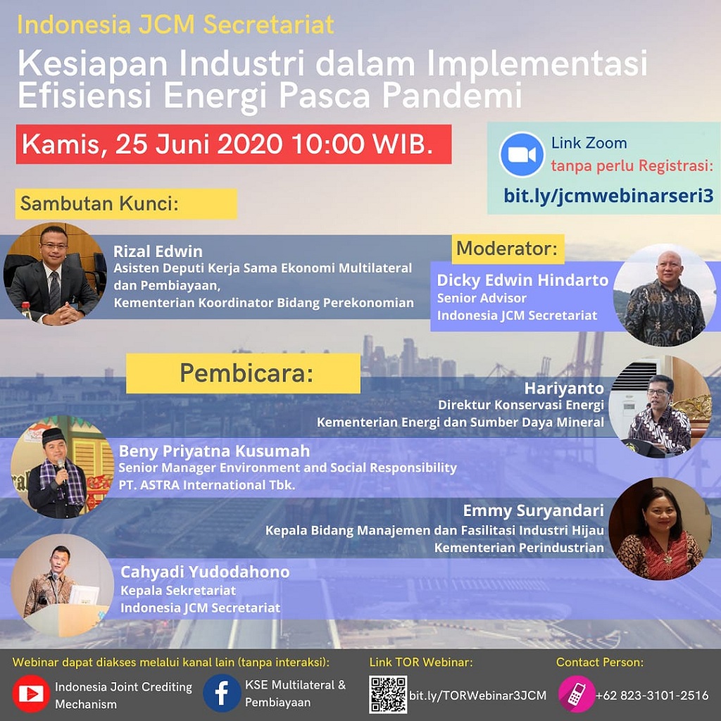 Hal inilah yang akan kami bahas di dalam diskusi melalui webinar esok hari. Webinar dengan kerjasama 3 kementerian terkait yang didukung juga oleh industri swasta ini diharapkan akan bisa memberi gambaran dan pemecahan bagaiimana implementasi efisiensi energi di industri paska dan selama pandemi.