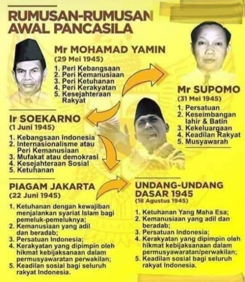 “Jika membandingkan usulan Sukarno tanggal 1 Juni 1945 dengan yang ditetapkan tanggal 18 Agustus 1945, cukup mengandung perbedaan fundamental,” kata Yusril.